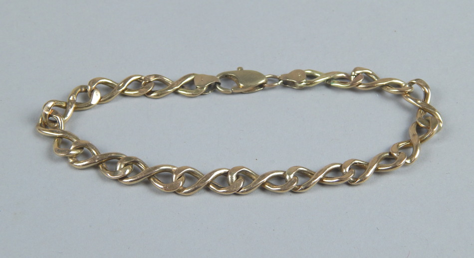 A fancy link bracelet, yellow metal marked 375, 6.2g all in