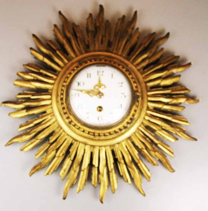 A French giltwood sunburst wall timepiece, with white enamel dial