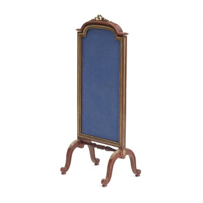 A French transition style walnut ajustable screen, decorated with brass and bronze mountings.