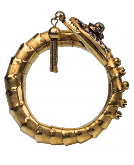 A GEM-SET GOLD AND ENAMEL SNAKE BRACELET