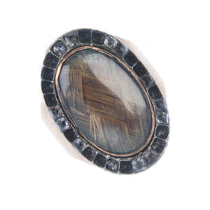 The woven hair panel, within a paste border, to the tapered band. Fifteen pastes deficient. Personal inscription to reverse reads, P McL Ob 15 June 1797 Ae 38 years. Weight 5.2gms.