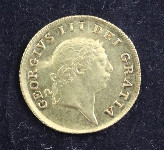 A George III gold half guinea, 1804, creased otherwise VF