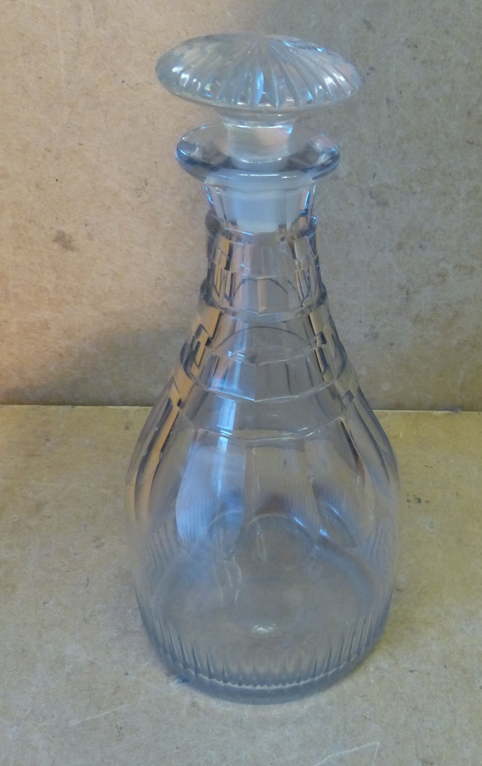 A Georgian Bulbous Thin Neck Decanter having mushroom shape stopper with chamfer decoration