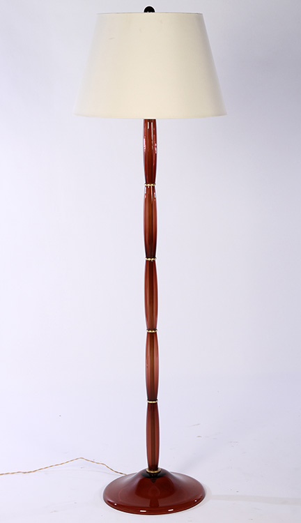 A good Murano glass floor lamp having butterscotch colored segments interconnected