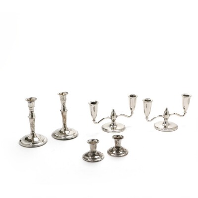 A group of 20th century silver candlesticks