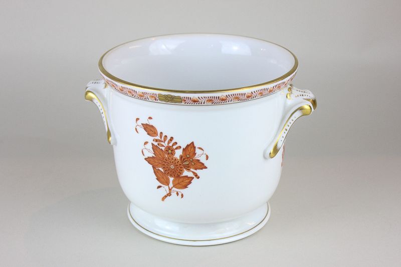 A Herend porcelain urn, Chinese bouquet pattern in rust with gilt embellishment