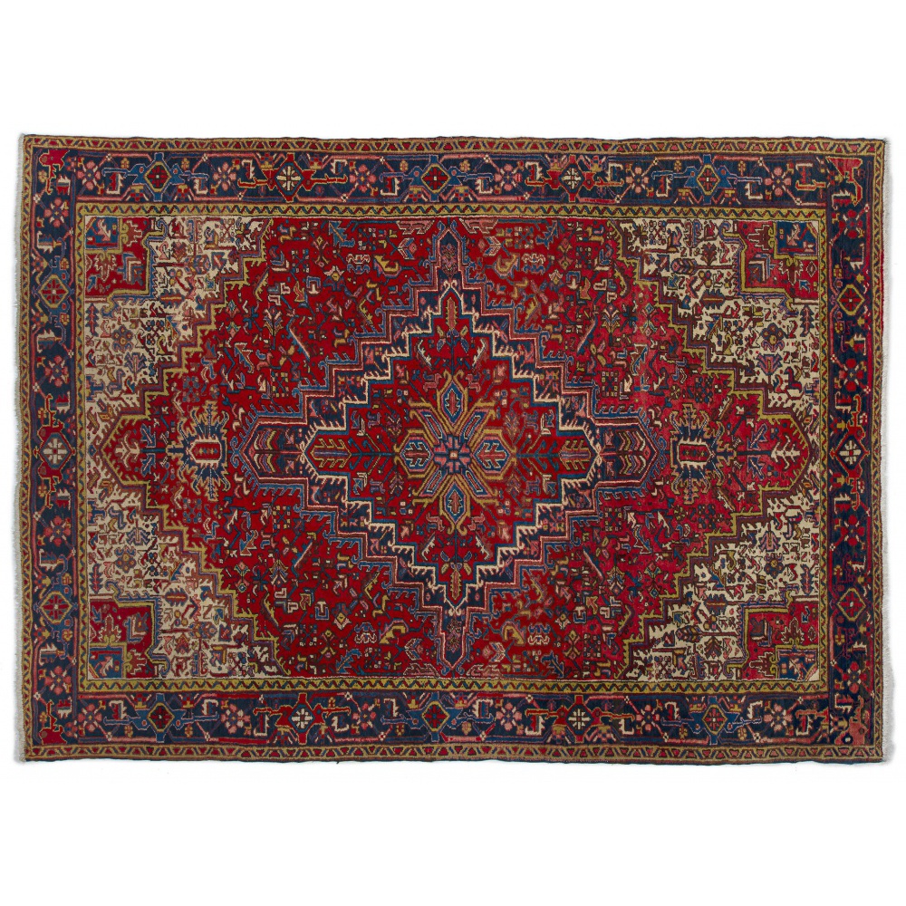 condition: fair, one end faded in an area 240 by 68cm, edges irregular and rebound, small areas of wear and discolouration; 338 by 240cm