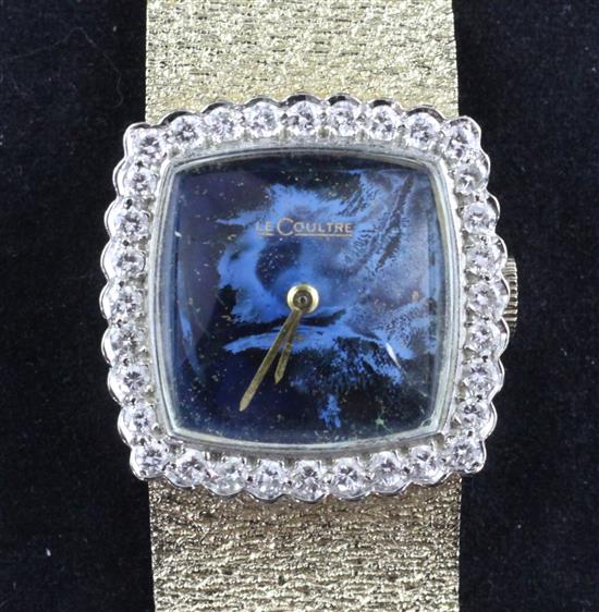 with blind painted dial and diamond set bezel, on an integral textured 14ct gold Jaeger Le Coultre bracelet