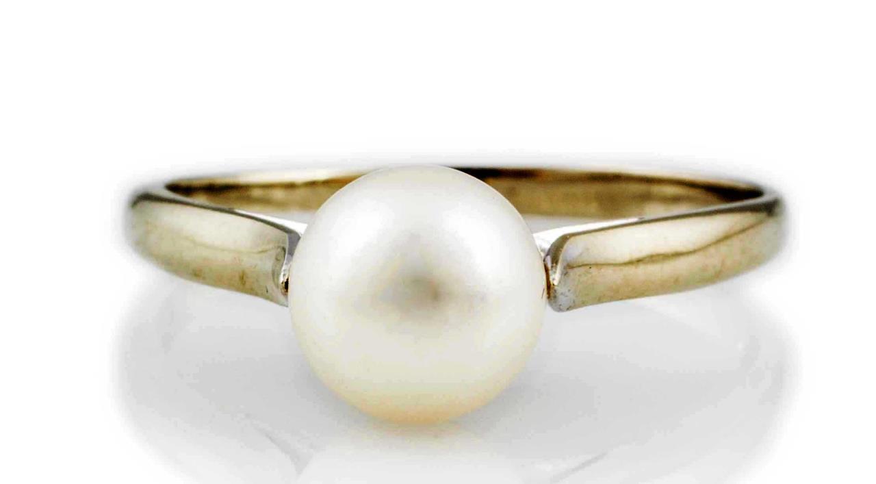 A lady's 18kt white gold cultured pearl ring, set with one 7.75 mm cultured pearl