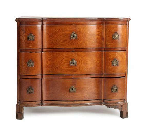 A large Danish baroque transition Louis XVI oakwood chest of drawers