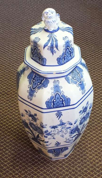 A large Delft jar and lid