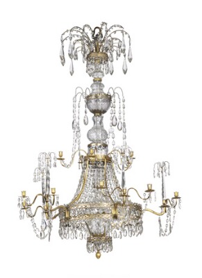 A large Russian late Louis XVI gilt brass and cut glass chandelier