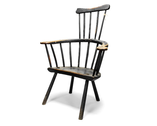 A late 18th/ early 19th century painted beech and ash primitive armchair