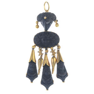 A late 19th century archaeological revival lava ram and cameo pendant.