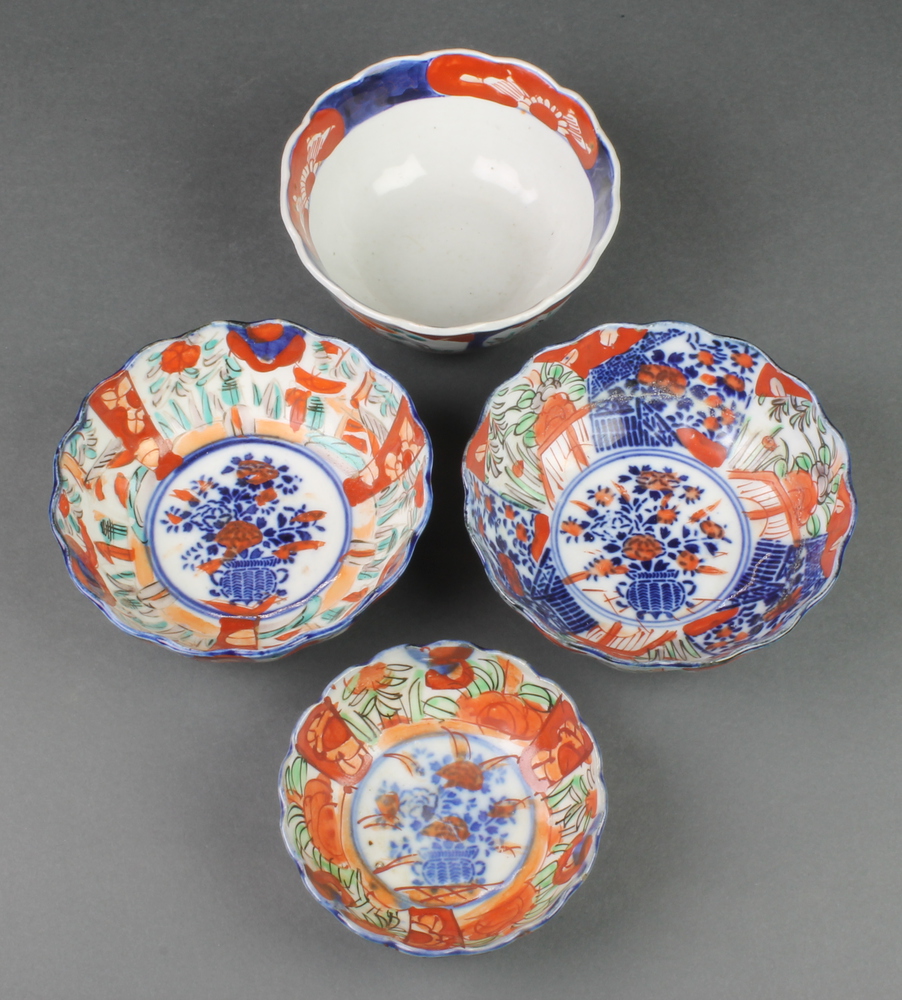 A late 19th Century Imari deep scalloped bowl decorated with flowers 5" and 3 others
