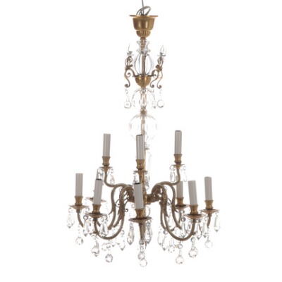A late 19th century Marie-Antoinette style bronze frame twelwe-light chandelier