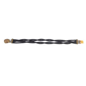Comprising four strands of woven hair, to the foliate engraved push-piece clasp. Length 18cms. Weight 5.6gms.