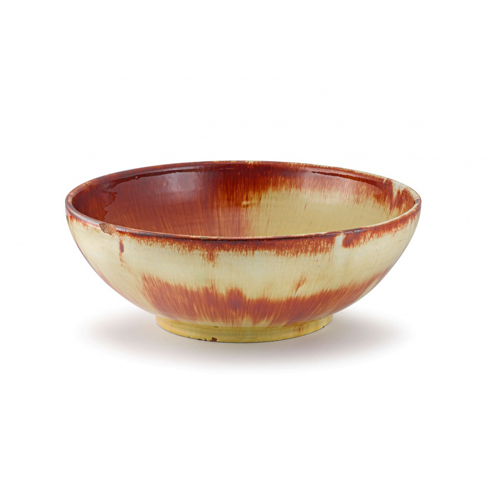 raised on a low foot, craquelure lines to the interior, chips, LW impressed circle, 26,9cm diameter