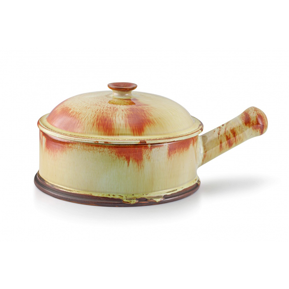 A Linn Ware cream-and-russet-glazed casserole dish and cover