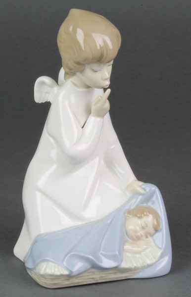 A Lladro figure of an angel kneeling before a sleeping child 4635