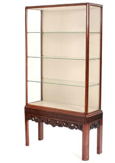 A mahogany Art Déco display cabinet, base with dental carvings and richly carved apron, rounded legs with profiling