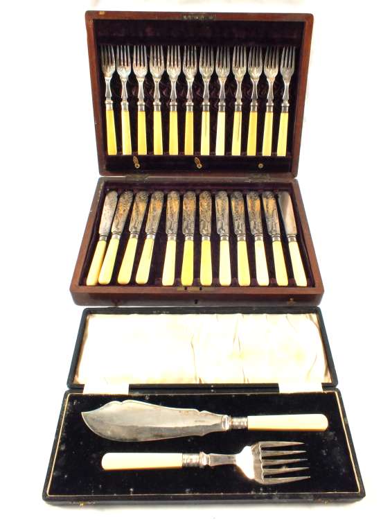 A Mahogany canteen of fish eaters and cased servers