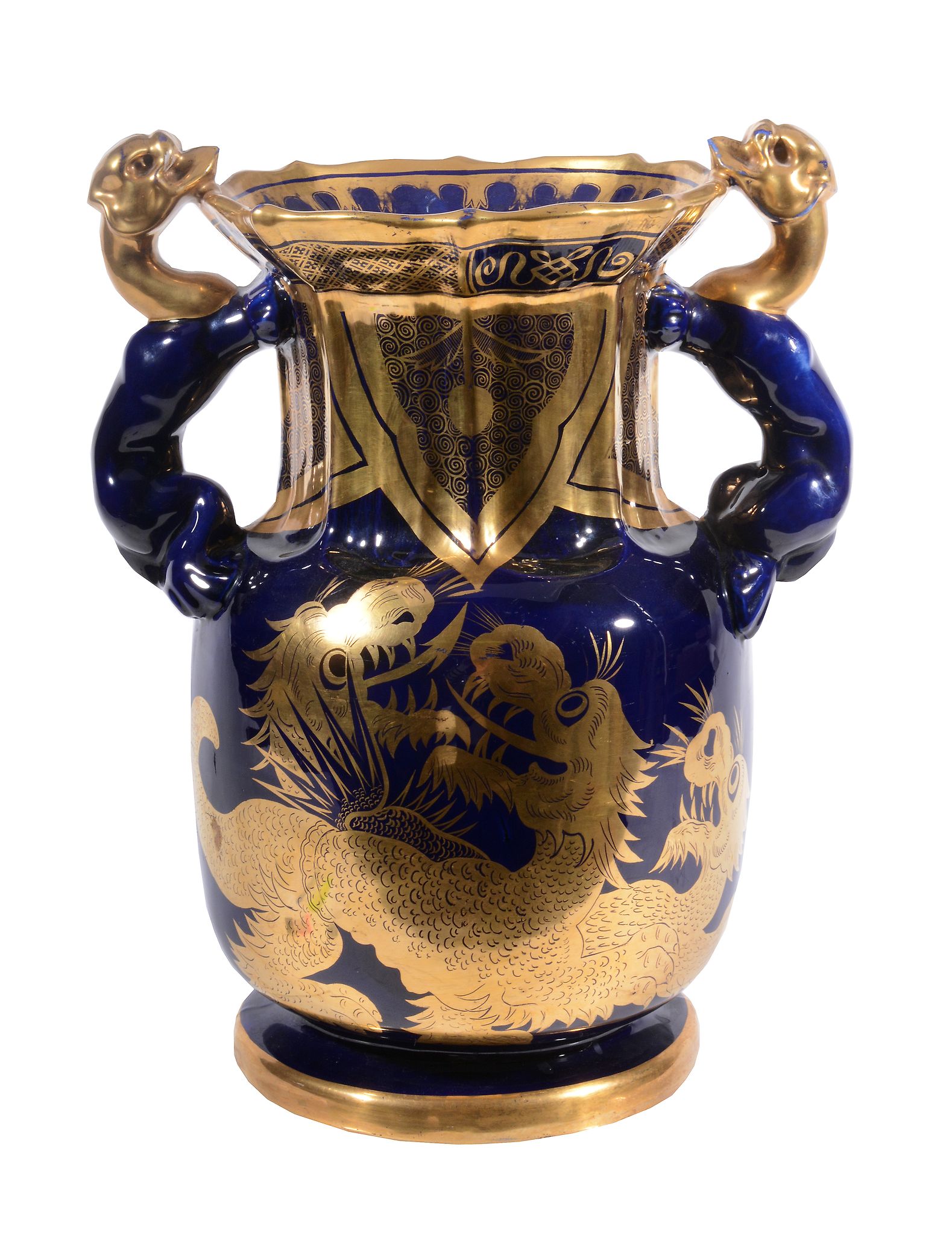 A Mason's Ironstone China blue ground and gilt two-handled vase