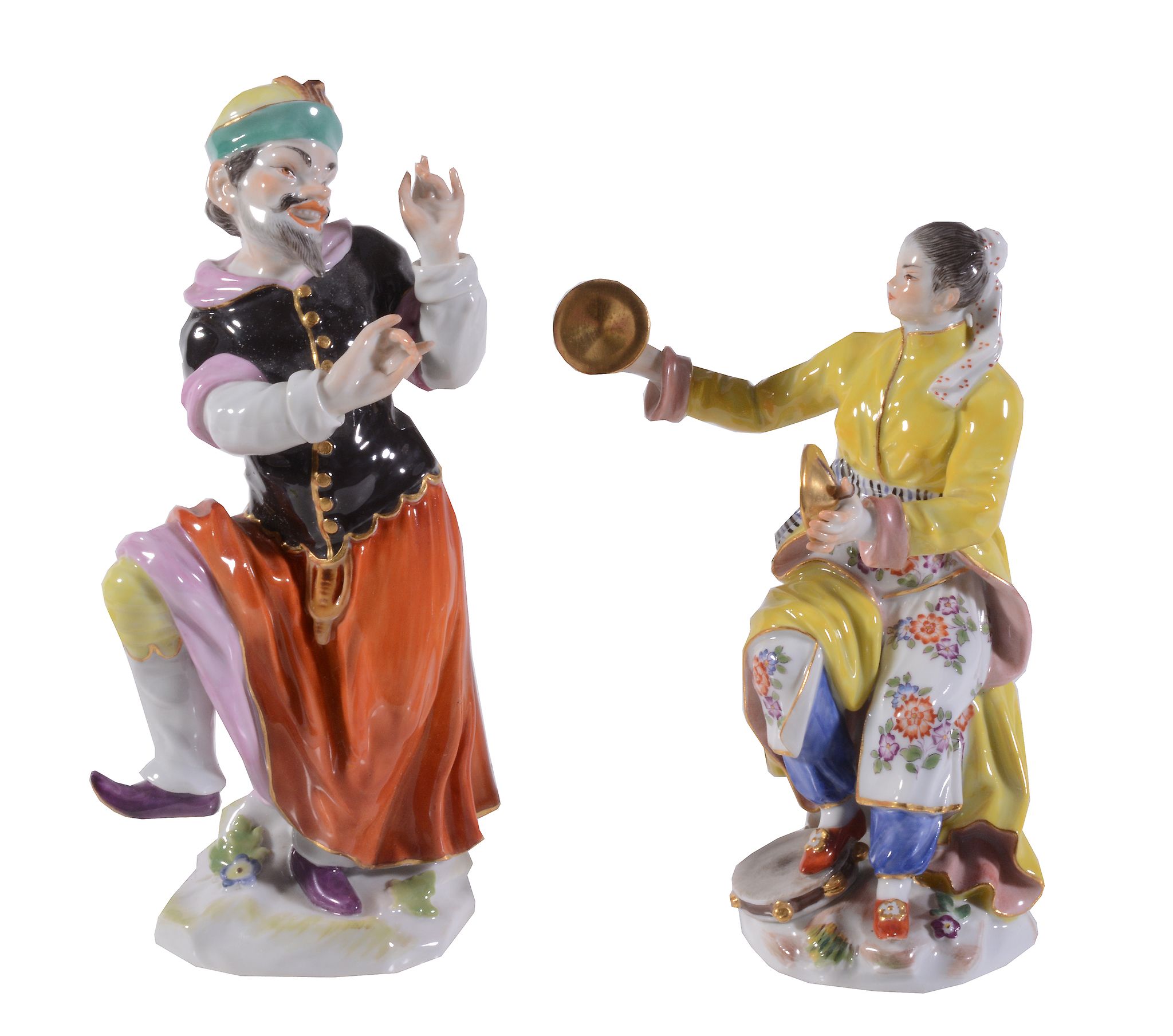 blue crossed swords mark, incised 65506 , 16cm high; and a Meissen mode of 'Japanese woman with cymbals', 20th century, blue crossed swords mark, incised 65665