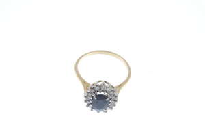 A mid 20th century 18ct gold sapphire and diamond cluster ring., mid-20th century