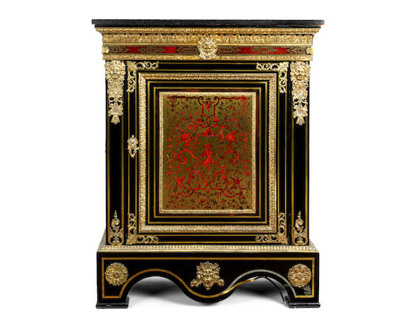A Napoleon III gilt bronze mounted ebonised, brass and tortoiseshell inlaid pier cabinet