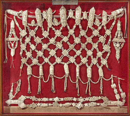 With arm bands, apron, and belt abundant with auspicious symbols and deities associated with the Chakrasmavara tantra