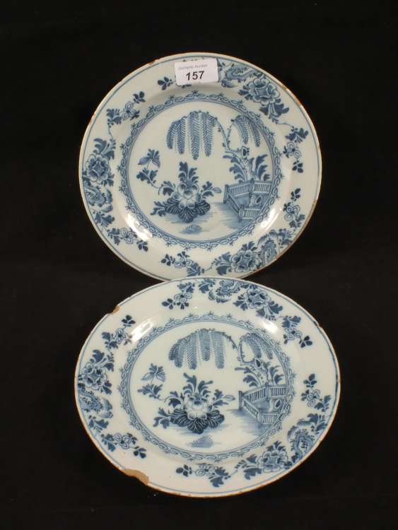 A pair of 18th Century Delft floral plates (one chipped)