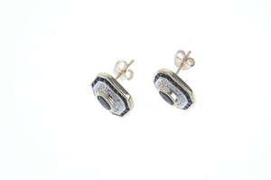 A pair of 9ct gold sapphire and diamond ear studs.