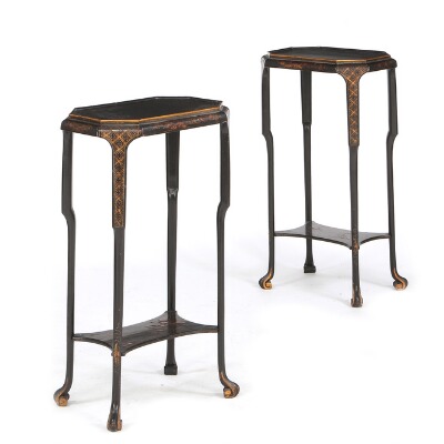 A pair of Chinese inspired black-lacquered and partially gilt occasional tables