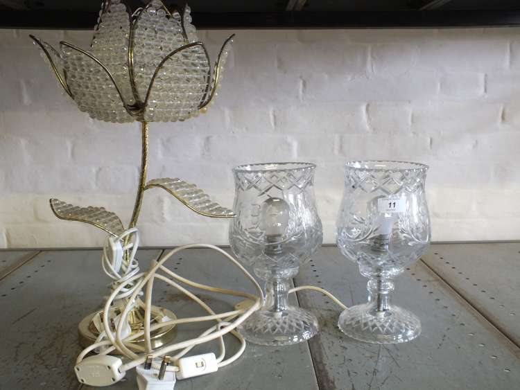 A pair of cut glass table lamps and one other
