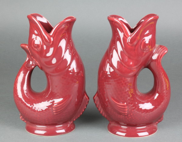 A pair of Dartmouth red glazed gurgle jugs in the form of fish