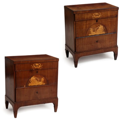 A pair of early 19th century Danish Empire inlaid mahogany chest of drawers