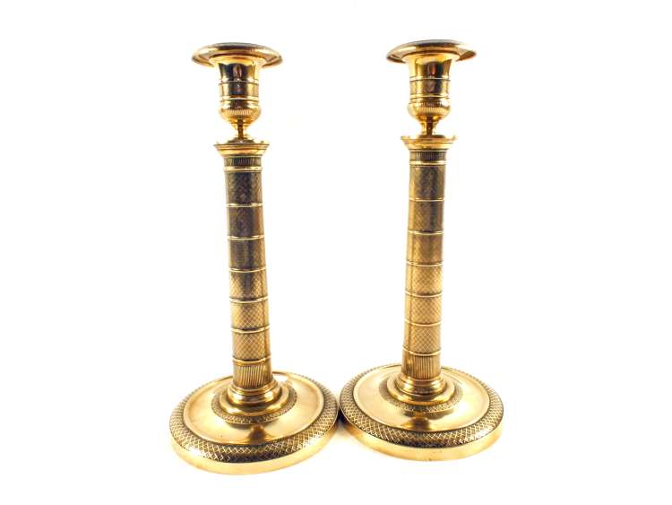 A pair of early 19th Century French Brass candlesticks with detachable sconces