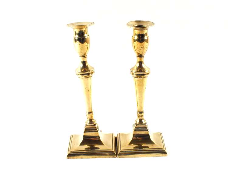 A pair of late 18th Century Adam style seamed Brass candlesticks with square bases