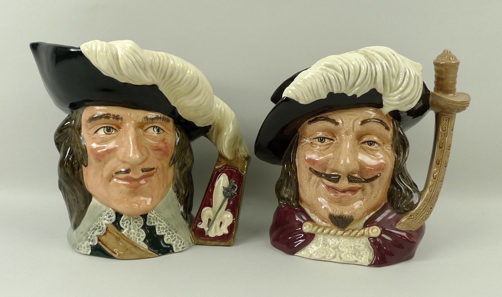 A pair of Royal Doulton character jugs of Musketeers, comprising 'Porthos', D6440, and 'D'Artagnan', D6691.