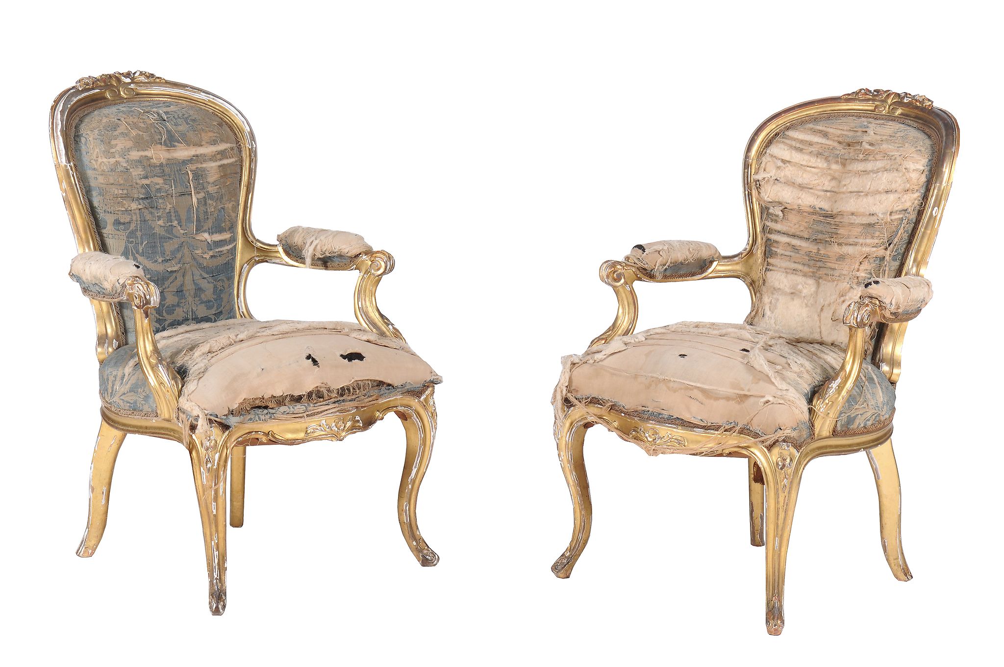 A pair of William IV carved giltwood armchairs, circa 1835