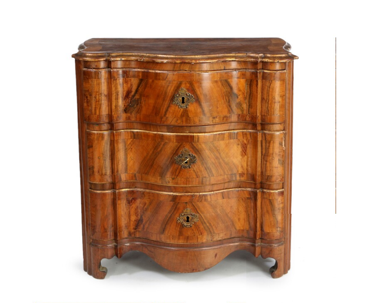 A partially gilt walnut baroque chest of drawers