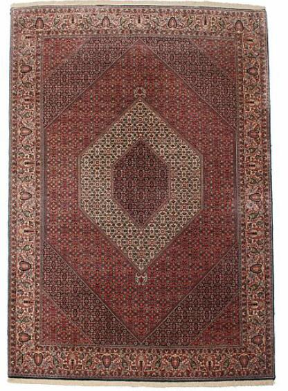 A Persian Bidjar medallion carpet, embellished with herati pattern on red base