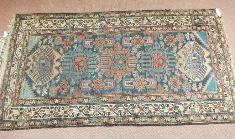 A Persian rug with repeating central design