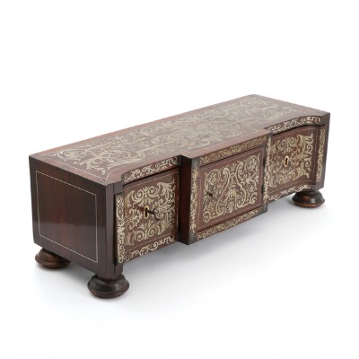A pewter inlaid rosewood cabinet, front with door and two drawers