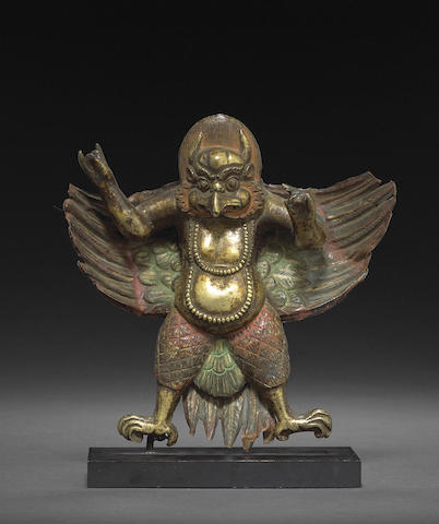 A polychromed gilt copper alloy figure of Garuda