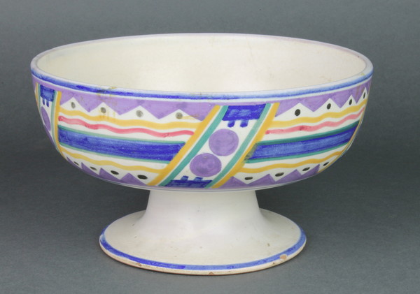 A Poole Carter Stabler pedestal bowl with geometric decoration and spread foot