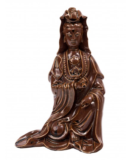 A RARE DEHUA BROWN-GLAZED FIGURE OF GUANYIN, QING DYNASTY