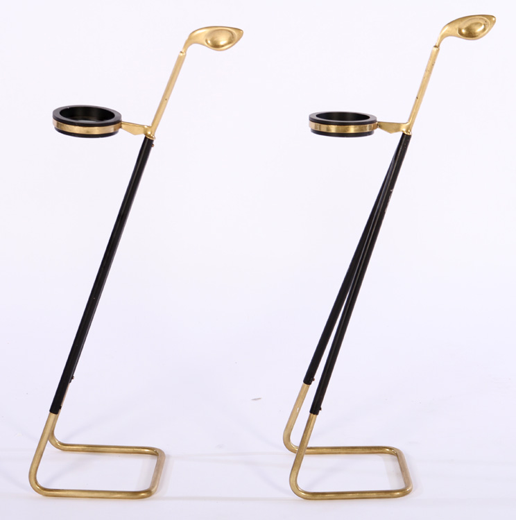 A rare pair of Italian iron and bronze drinks tables in the form of golf clubs circa 1960.