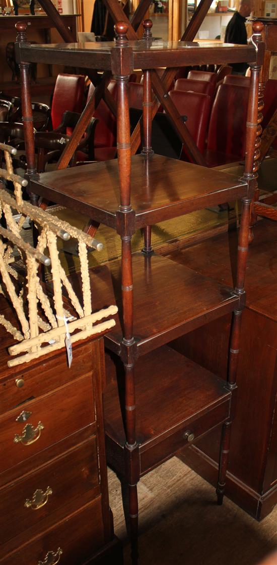 A Regency mahogany four tier whatnot, with base drawer, W.1ft 4in